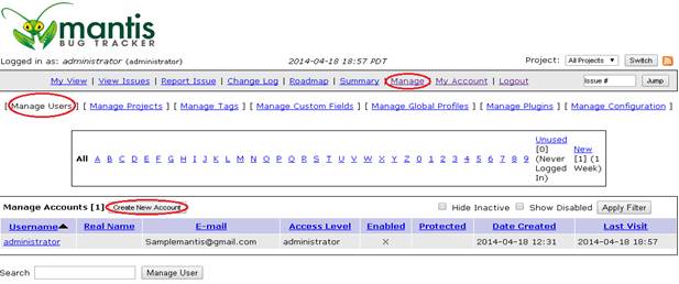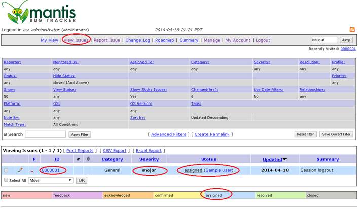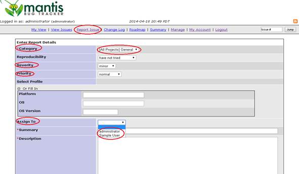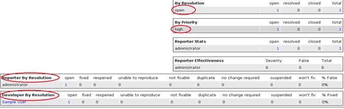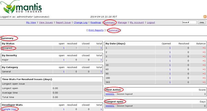 reports in Mantis by clicking on Summary in the Main menu. By clicking the