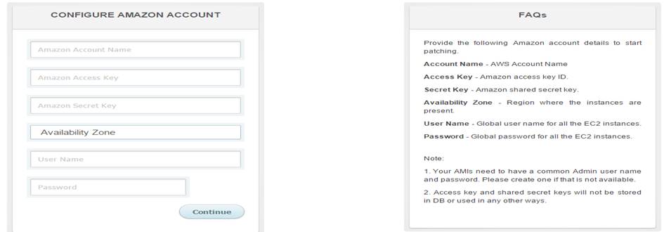 · Once logged in to the console for the first time you will be prompted to provide the AWS related information to start patching your servers.